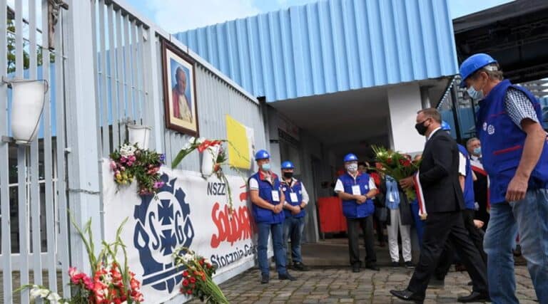 W 40. rocznicę podpisania porozumień sierpniowych i powstania NSZZ "Solidarność" prezydent Andrzej Duda i premier Mateusz Morawiecki złożyli kwiaty pod historyczną bramą nr 2 Stoczni Gdańskiej.