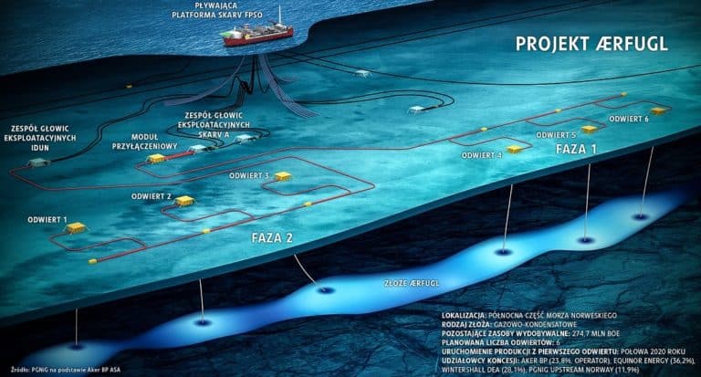 Wydobycie z pierwszego odwiertu na złożu Ærfugl zostanie uruchomione w połowie 2020 roku. Do końca przyszłego roku do produkcji zostaną włączone jeszcze trzy kolejne otwory. Z leżącego na północy Morza Norweskiego złoża spółka chce docelowo wydobywać pół miliarda metrów sześciennych gazu rocznie.