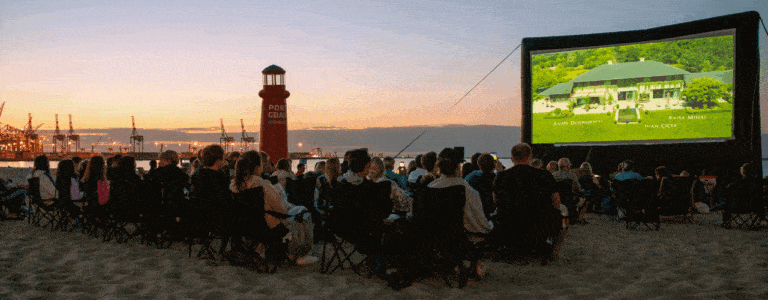 Kino pod chmurką z widokiem na Port Gdańsk wkomponowało się już w wakacyjny krajobraz Stogów.