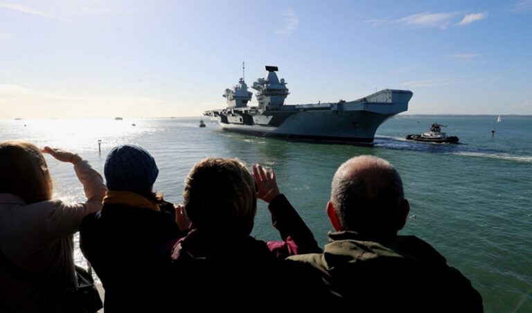 Brytyjska królowa Elżbieta II złożyła w sobotę krótką wizytę na nowym lotniskowcu Royal Navy - HMS Queen Elizabeth, tuż przed rozpoczęciem jego pierwszej misji na morzu.