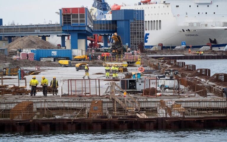 Na terminalu promowym w Świnoujściu, gdzie inwestorem jest Zarząd Morskich Portów Szczecin i Świnoujście SA postępują roboty budowlane wykonywane przez firmę Budimex.
